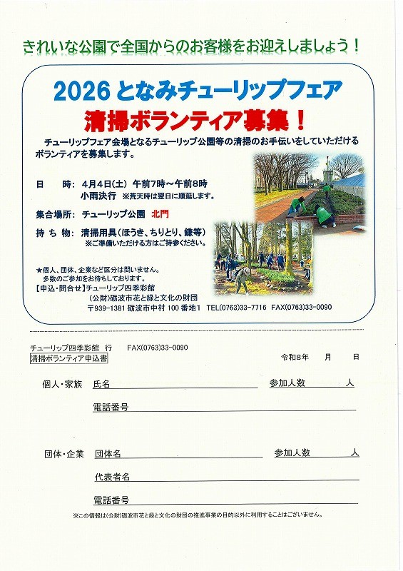 チューリップ公園清掃ボランティアを募集します!